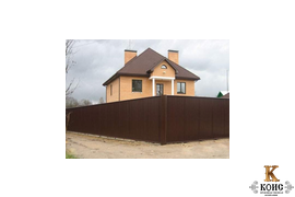 забор из профнастила на кирпичной ленте и кирпичных столбах